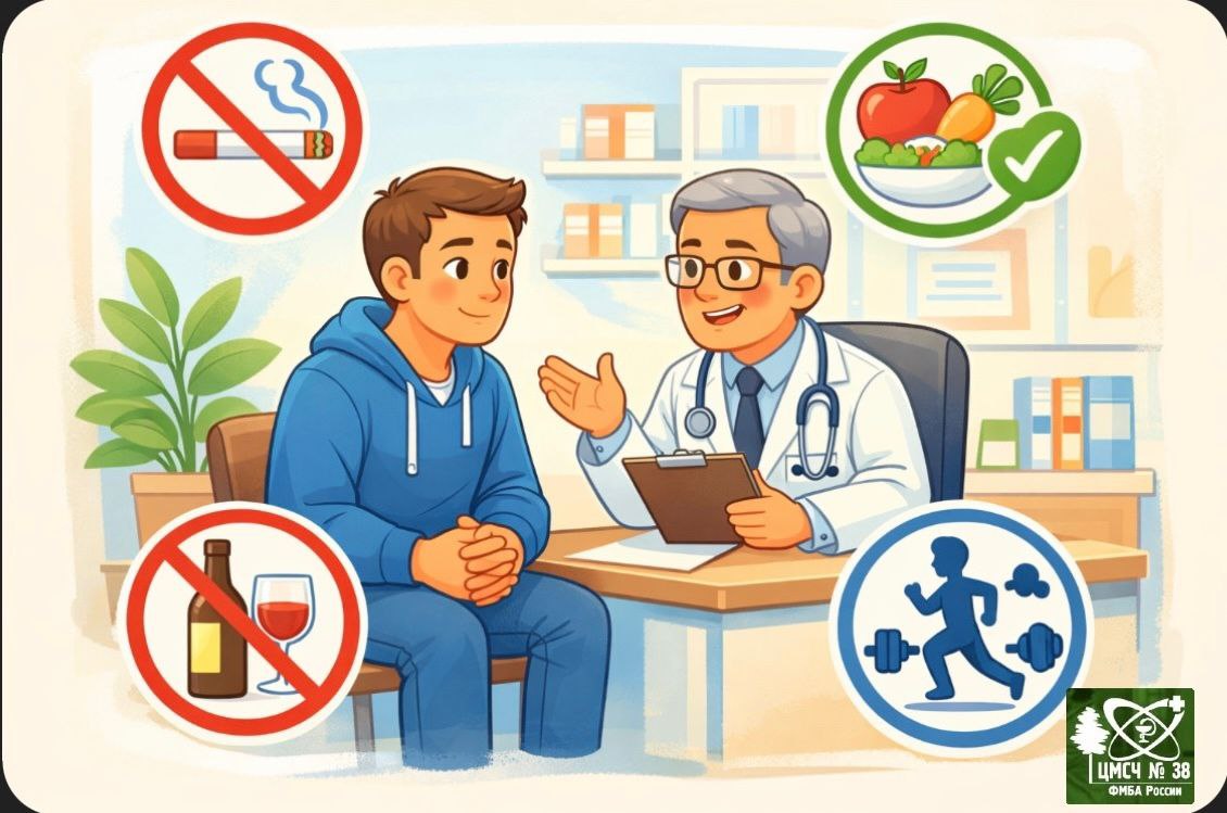 - Отказ от табакокурения, рациональное питание, поддержание массы тела, ограничение алкоголя, физическая активность.