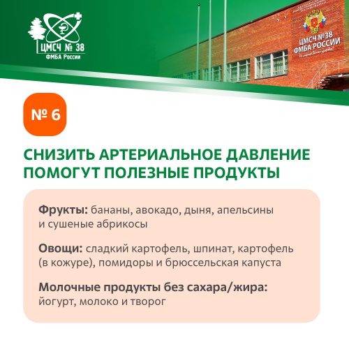 Снизить давление помогут не только таблетки, но и правильные продукты:(фрукты: бананы, авокадо, дыня, апельсины, курага; овощи: батат, шпинат, печеный картофель (в кожуре), помидоры, брюссельская капуста; молочные продукты: йогурт, молоко и творог (без сахара и жира))