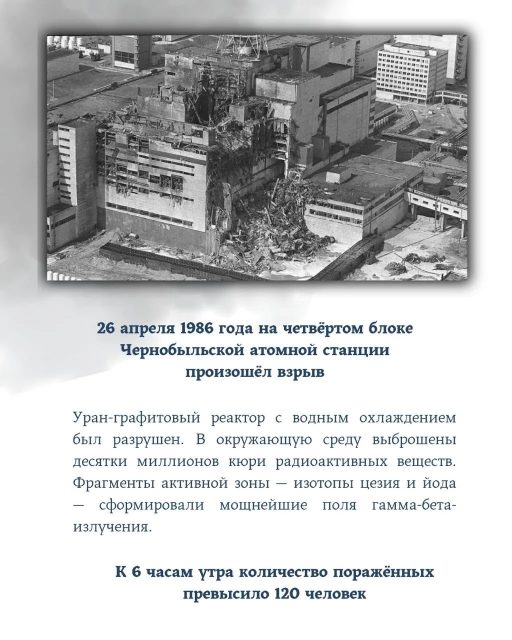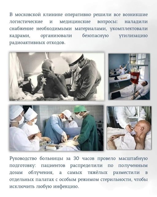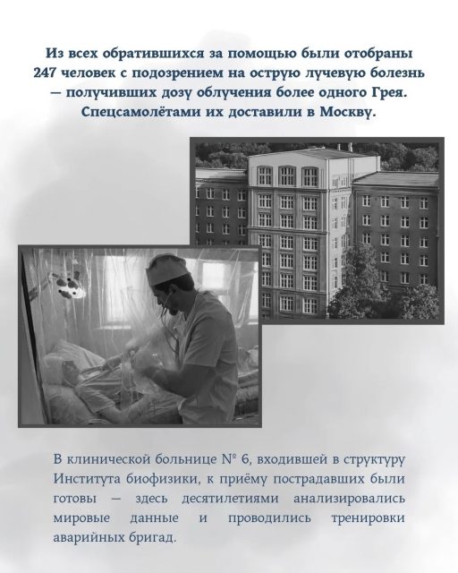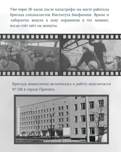 В карточках — о том, как врачи и учёные Третьего главного управления при Минздраве СССР, правопреемником которого сегодня является ФМБА России, участвовали в ликвидации последствий аварии, спасали пострадавших и внесли неоценимый вклад в глобальную безопасность.