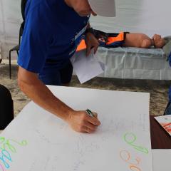 Посетители “медицинского пункта” выражали свои пожелания и благодарность в стенгазете. Каждый получил прекрасные сувениры от совместного проекта медиков и атомщиков “Будь здоров с ЛАЭС”.