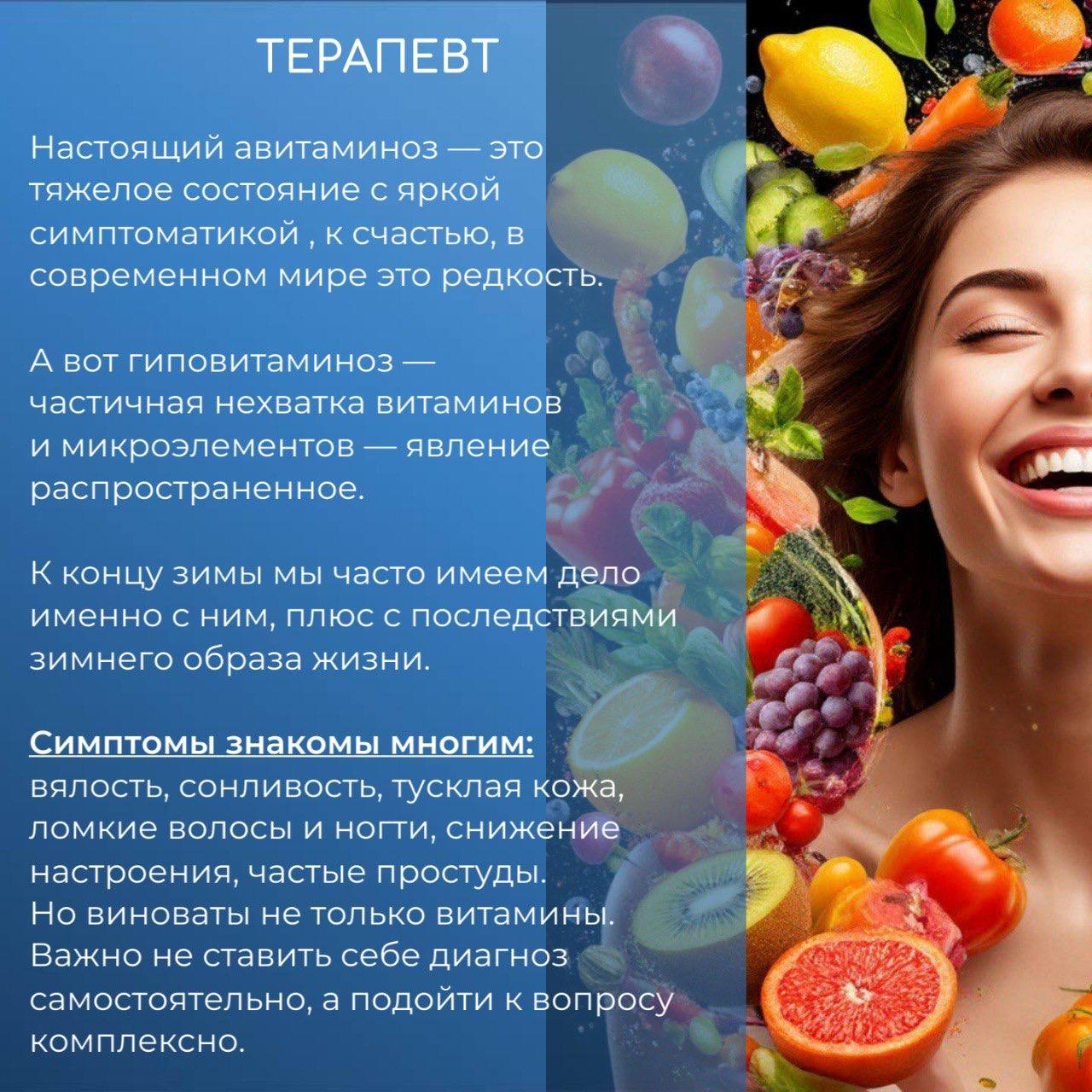 До первого весеннего месяца осталось всего 4 недели! А наш организм за зиму уже чувствует себя как после долгого марафона: меньше солнца, свежих местных овощей и фруктов, снижение активности. Мы привыкли называть это состояние «весенним авитаминозом». Но что это на самом деле — миф или нет? Разбираемся в карточках вместе с командой специалистов.